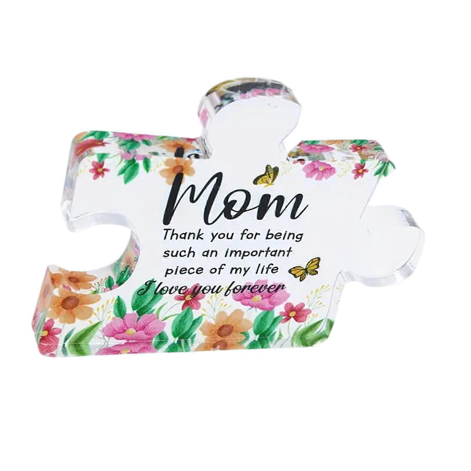 Cute Engraved Floral Acrylic Block Puzzle Plaque Mother Day Christmas Birthday Gift for Mom Grandma from Daughter Son Multicolor