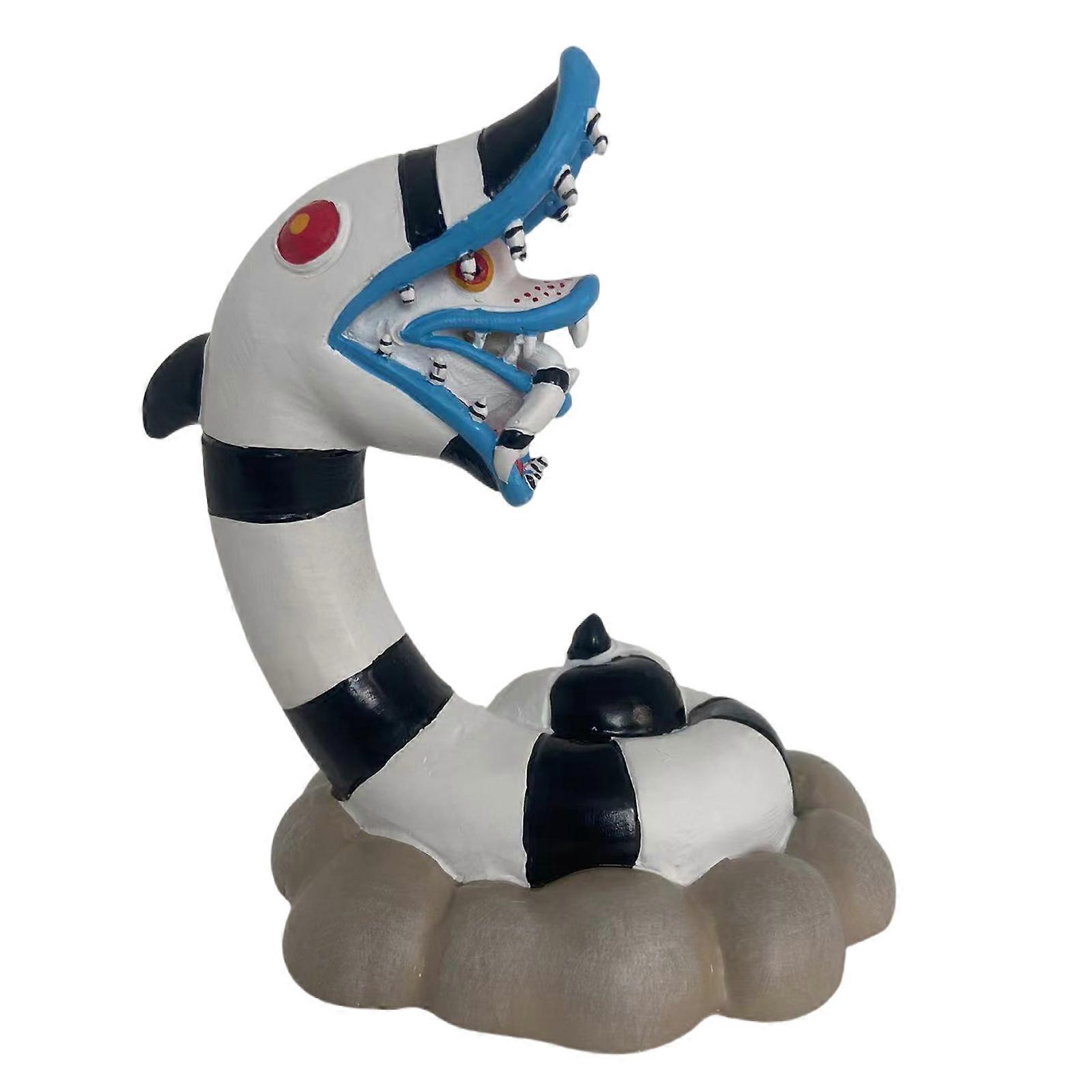 Horror Figure Striped Snake Statue Halloween Sandworm Resins Figurine Ornament for Office or Living Room Decoration Multicolor