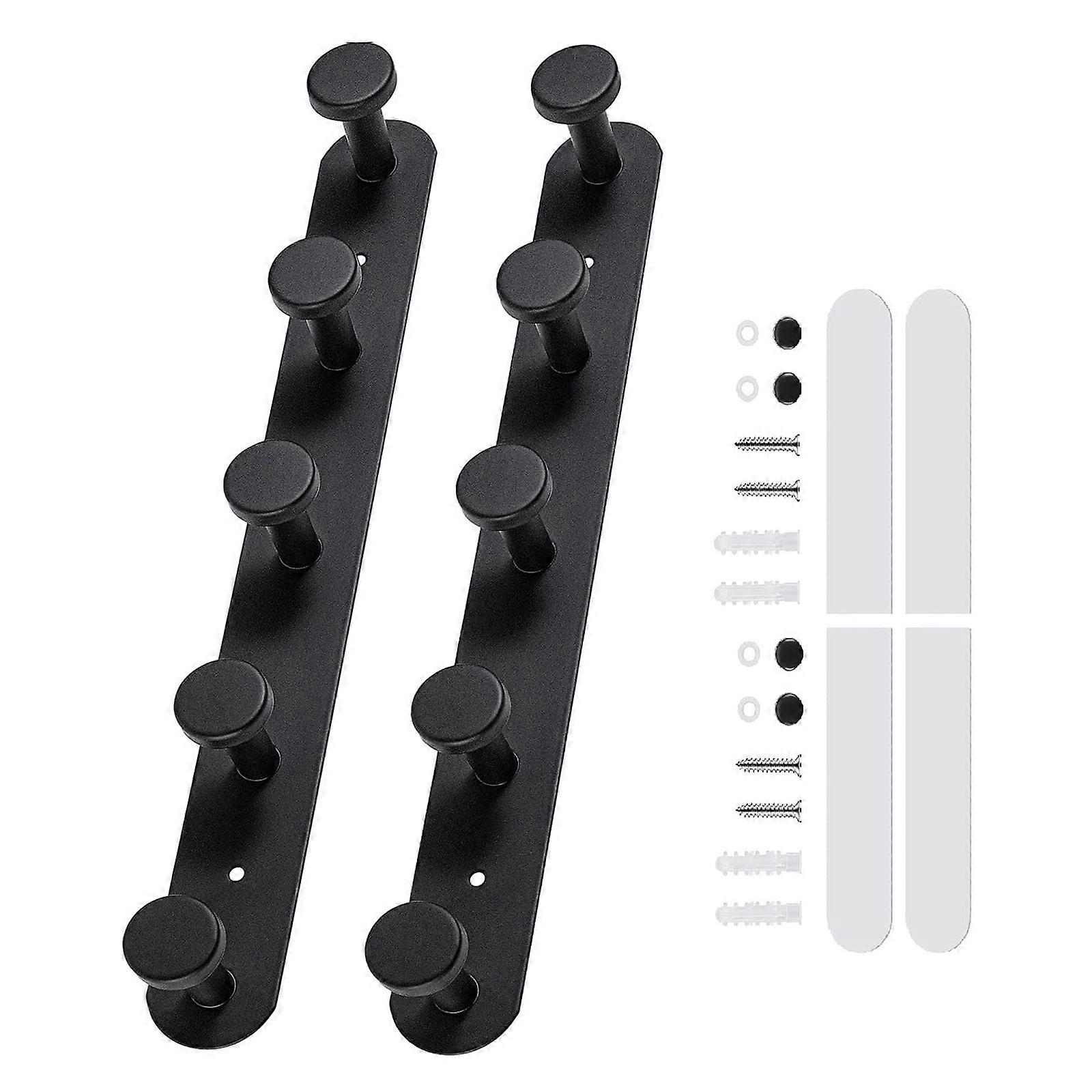 1pc/2pcs Black Adhesive Coat Hooks With Screws Heavy Duty Hook Rail For Hanging Clothes Bags Keys In Any Room Multicolor