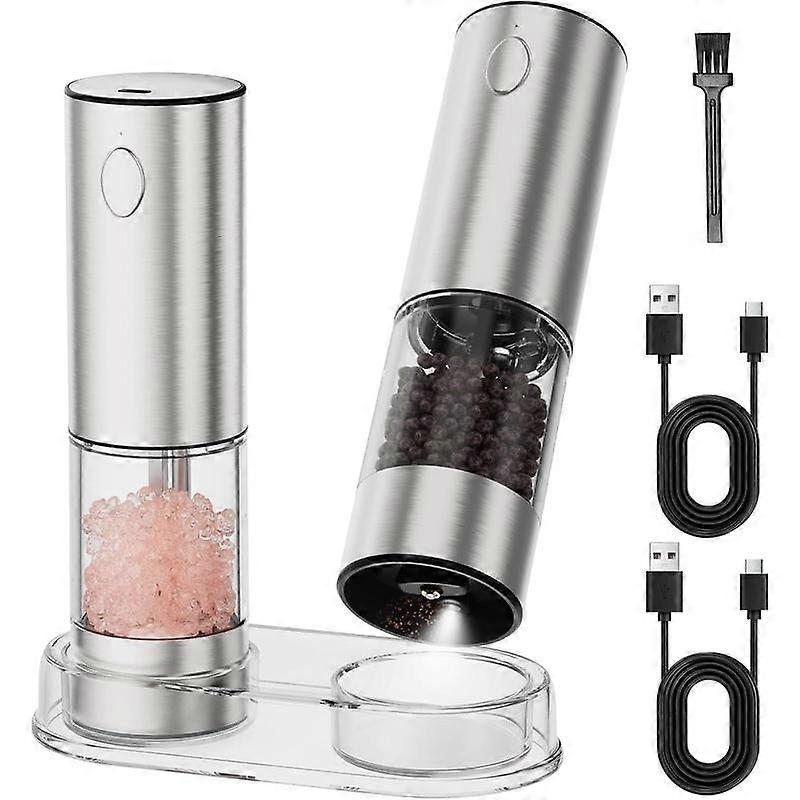 Electric Salt and Pepper Set, Rechargeable Automatic Salt Pepper Shakers Mills, Adjustable Coarseness Easy Filling with Base, for Kitchen O