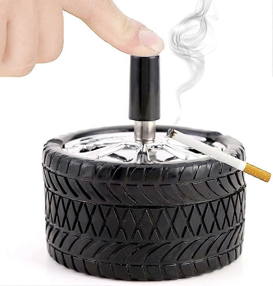 Teensery Round Push Down with Spinning Ashtray Cigarette Ashtray for Indoor or Outdoor Use Ash Tray for Home Office, Black