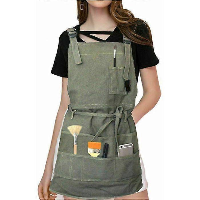 Apron for Men Women with Adjustable Straps and Large Pockets, Canvas Cotton Cooking Kitchen Chef Bib Aprons Waterproof Green
