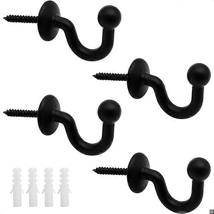 2 Pairs Curtain Hooks Drapes, European Style Curtain Hook, Black Window Curtain Holdback Tiebacks, Heavy Duty Wall Mounted Hooks Curtain Cup Key