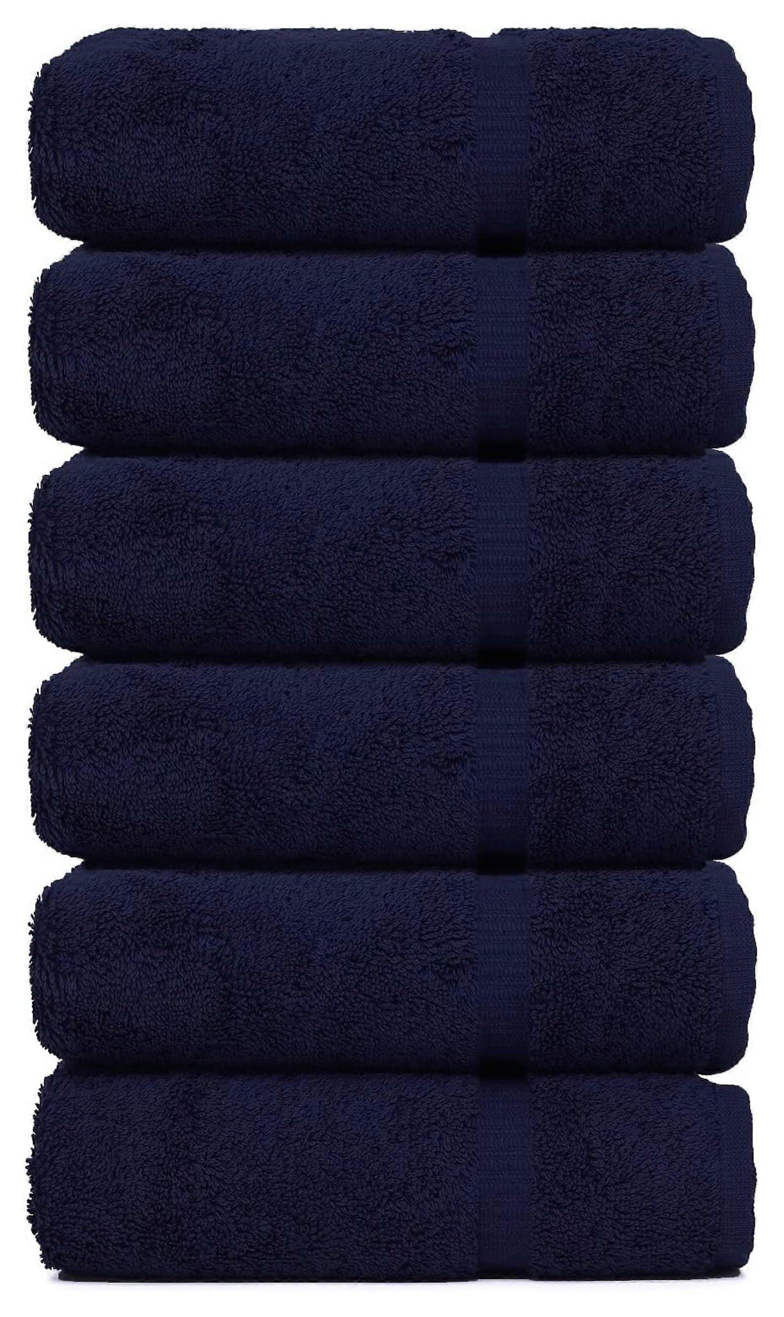 Luxury Hotel & Spa Turkish Cotton 700 GSM Quick Dry Towel Set, Eco Friendly Dobby Border Hand Towels 16x30, Navy Blue - Set of 6