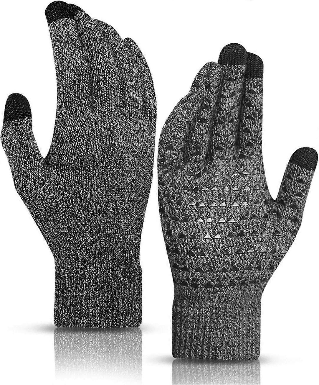 Winter Wool Knitted Gloves for Men Women - Touch Screen Cold Weather Thermal Warm Knit Gloves for Running Driving