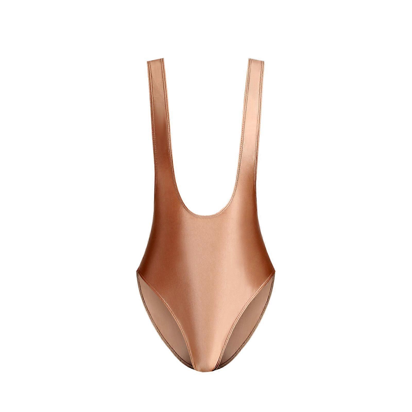 Women Sexy Shiny Jumpsuits One Piece Thong High Cut Backless Leotards Bodysuits