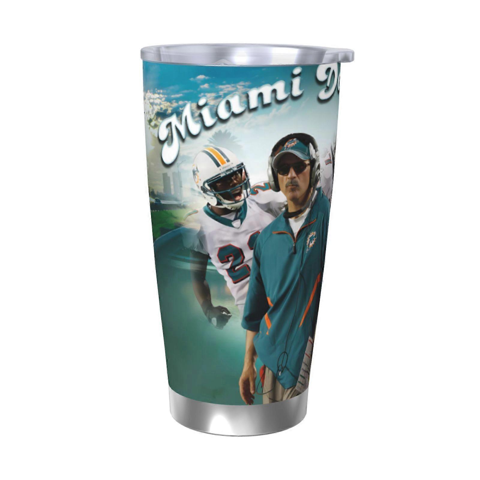 Dolphins Football Team 20oz Stainless Steel Thermos Cup with Lid & Straw, Compatible with Car Cup Holder, for Hot/Cold Drinks