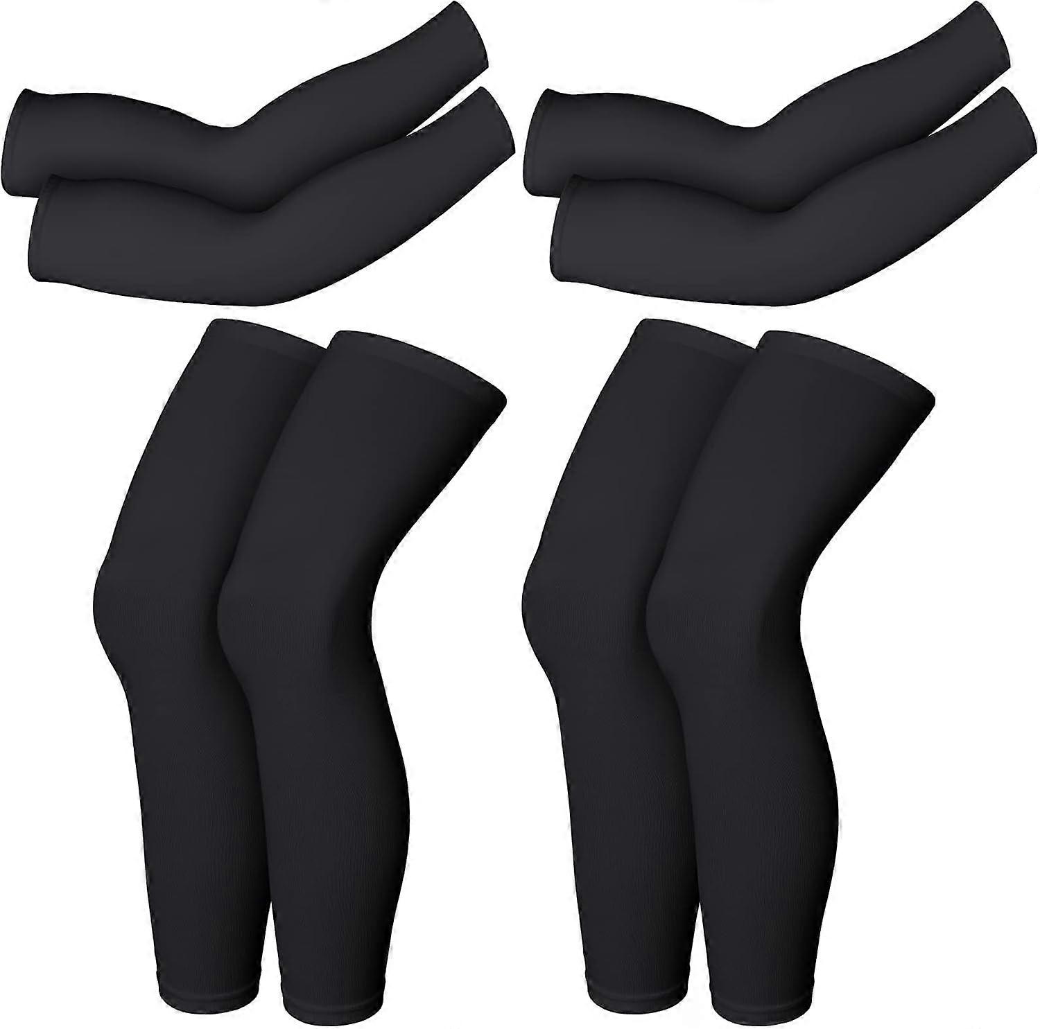 Kiibsot 2 Pairs Compression Full Length Leg Sleeve Arm Sleeve for Men Women, for Football,Tennis,Running