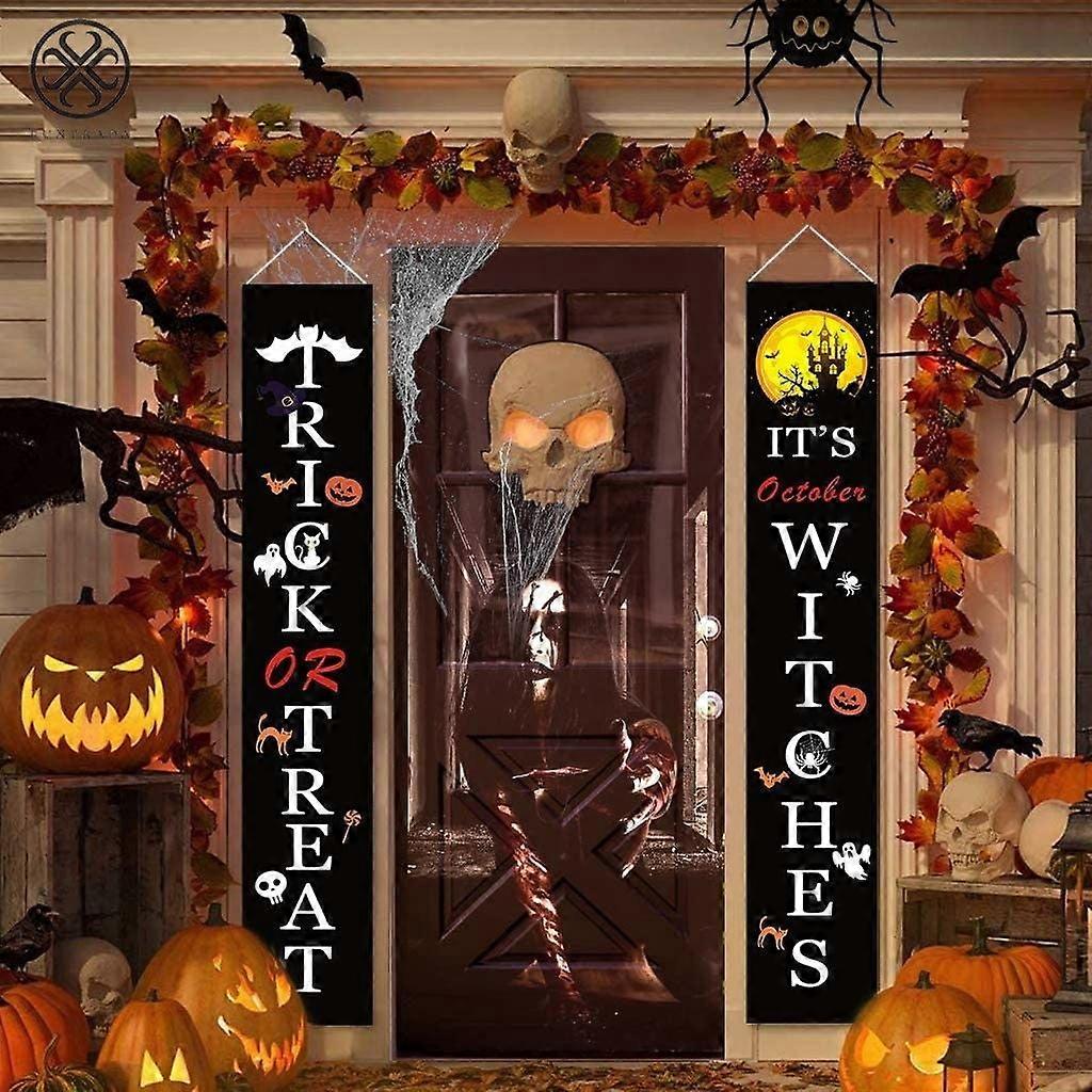 Luxtrada Halloween Outdoor Decor - Front Door Welcome Sign, Trick or Treat Porch Banner, Party Hanging Decor Supplies