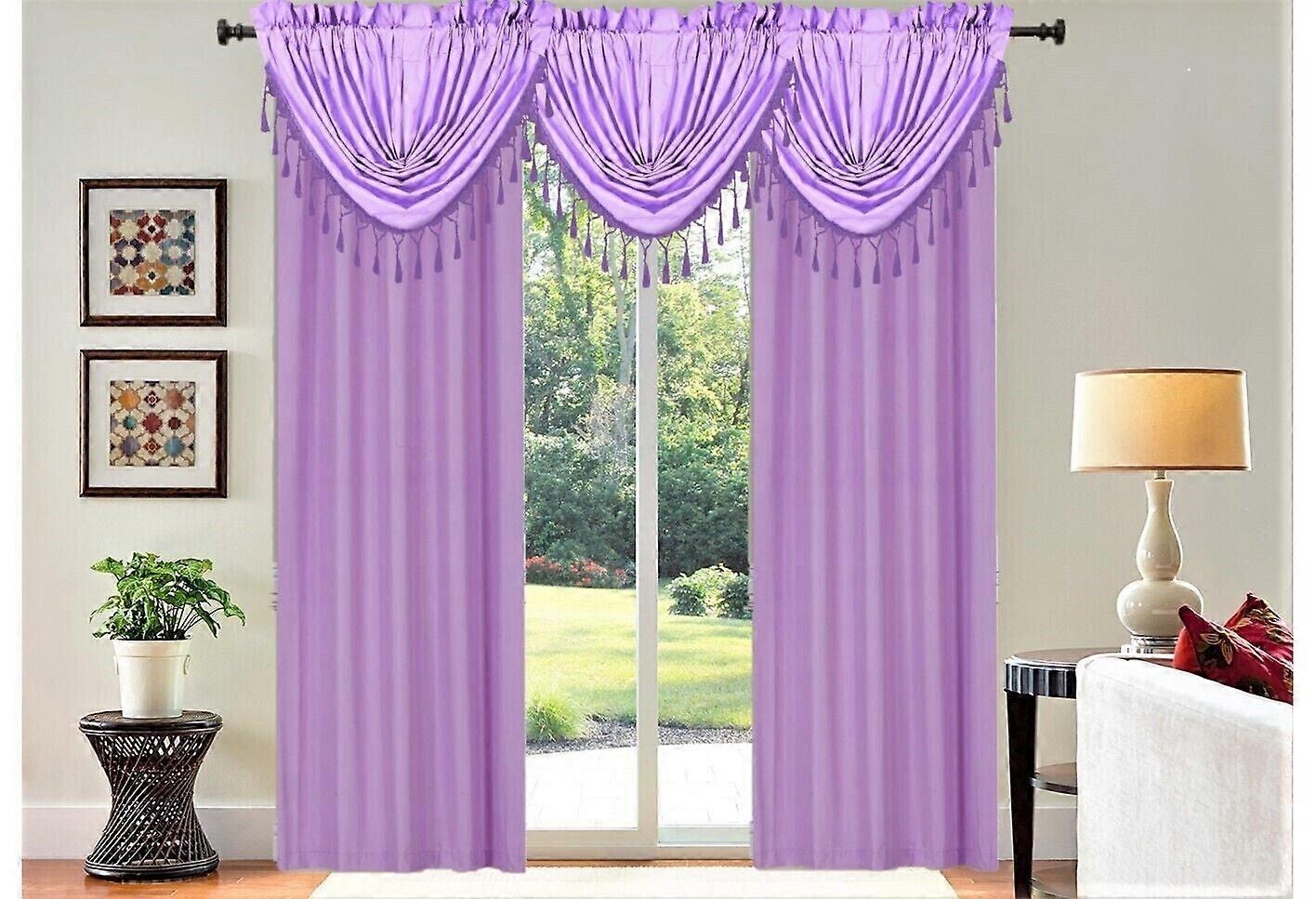 R64 Set of 2 Panels & 3 Matching Waterfall Valances Lilac Color 100% Privacy Blackout Window Curtain for Bedroom Home Décor