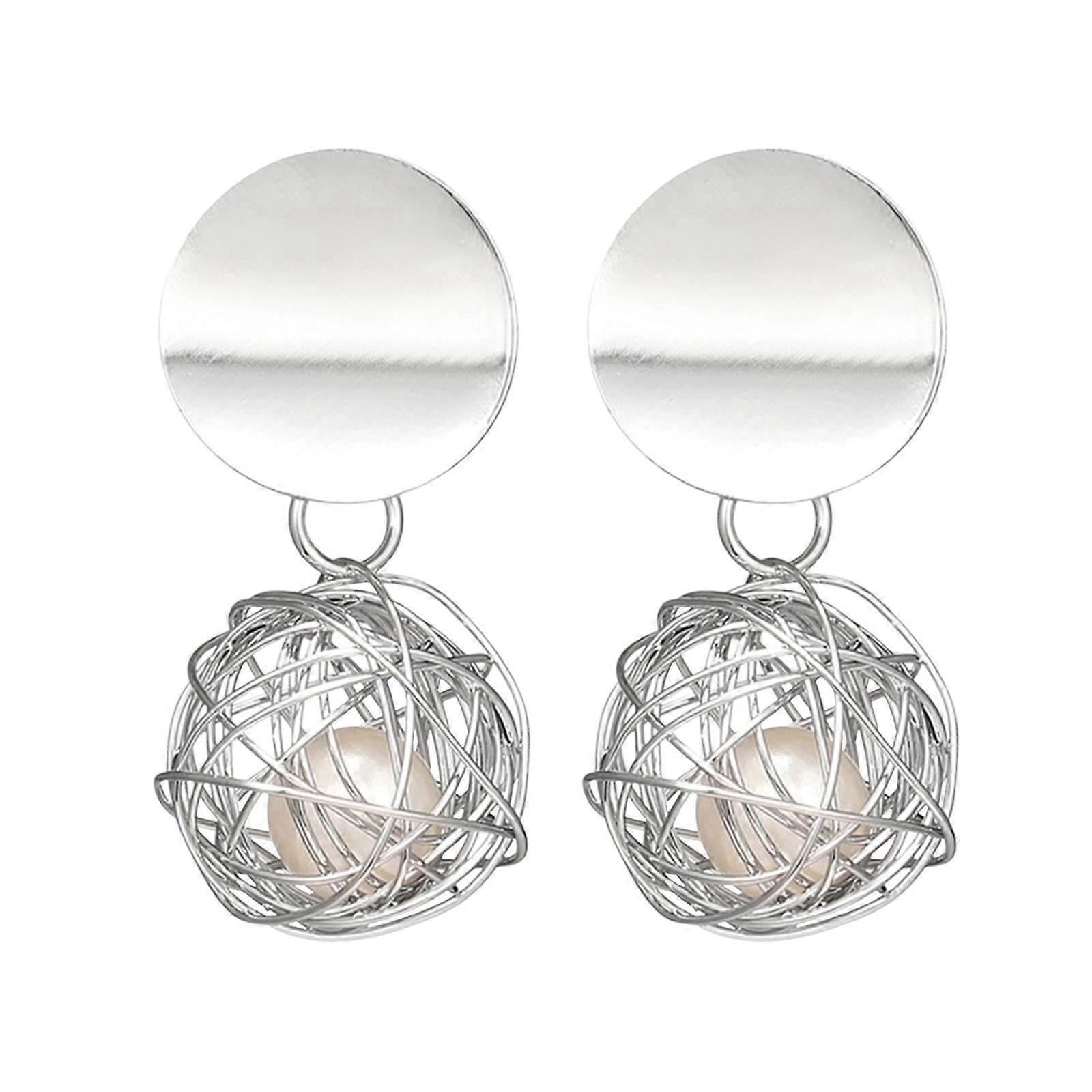 Valentines Day Gifts! WJSXC Creative Pearl Earrings with Metal Sequins & Tassels, Gorgeous Silver Jewelry for Prom Party