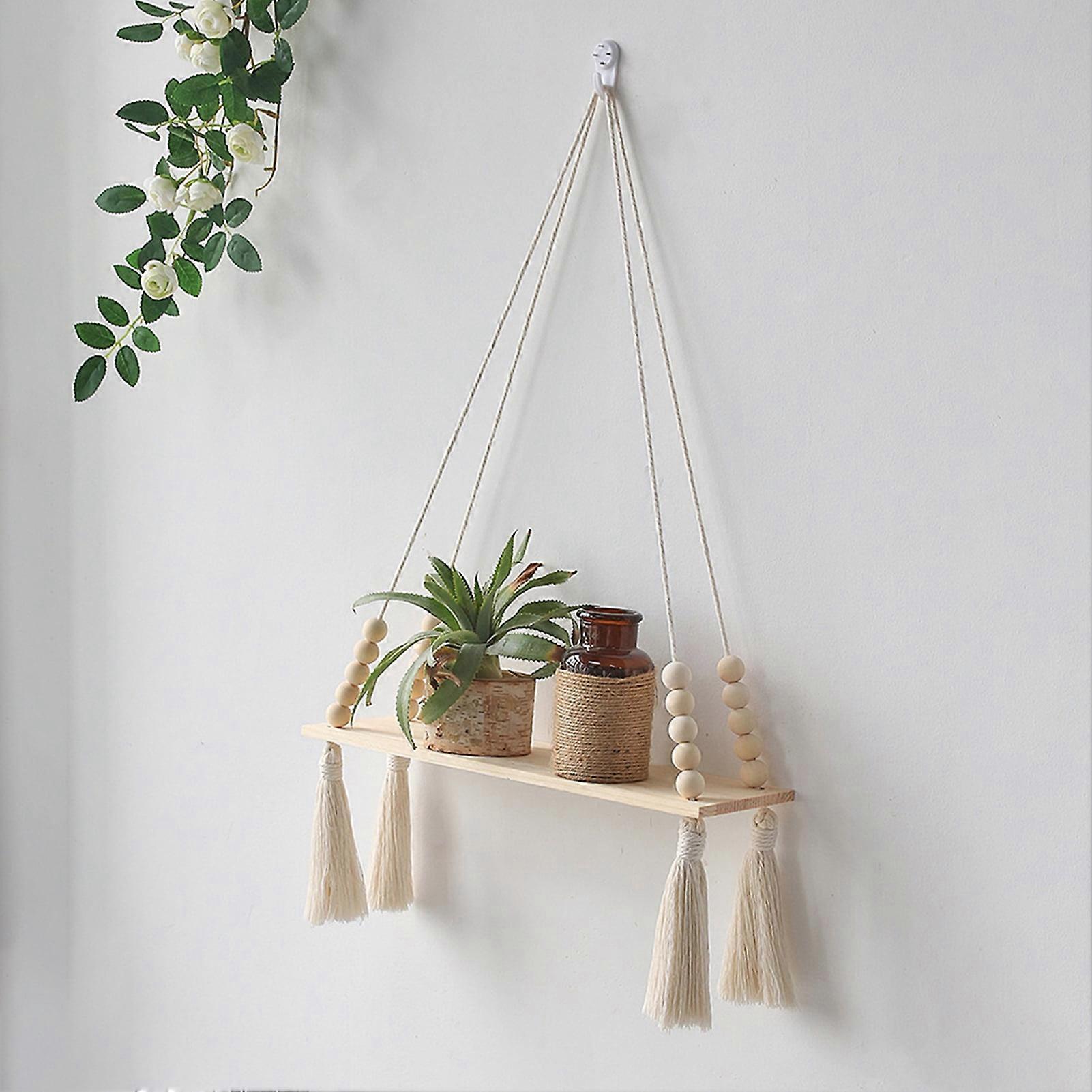 Boho Macrame Hanging Shelf - Handcrafted Rustic Cotton Rope Tapestry, Farmhouse Style, Home Decor, Bohemian, Wall Hanging