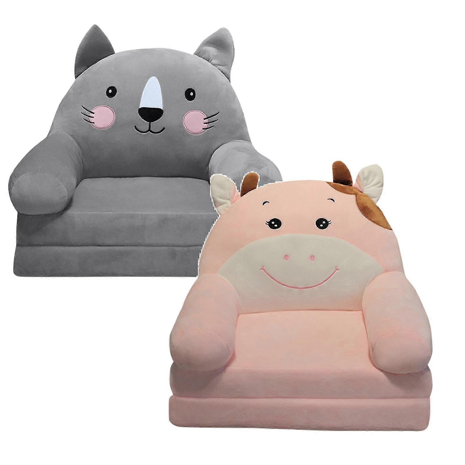 Plush Foldable Kids Sofa Cover, Compatible with Lazy Sofa, Cute Cartoon Design, 2PC, Without Liner Filler
