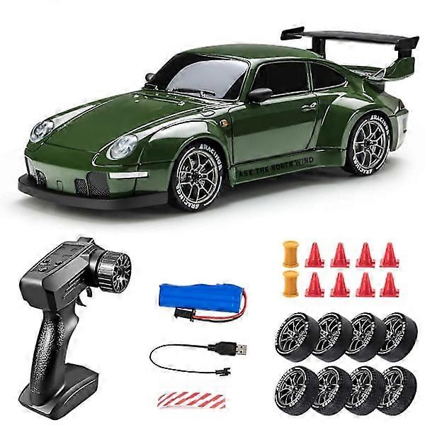 1/24 Scale 4WD RC Drifting Car with 2 Speed Modes, LED Lights & 50m Range (FMY) army green