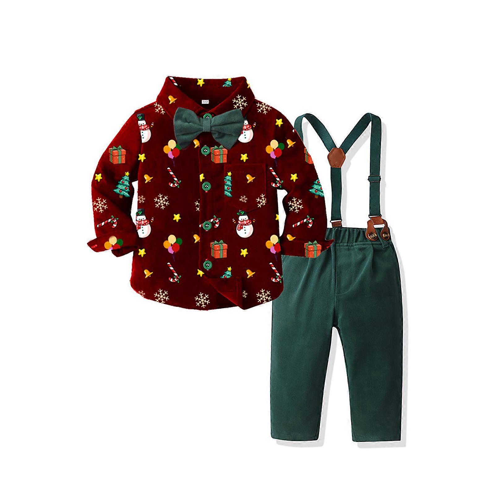2025 Jacket Pants Set Boys Long Sleeved Shirt And Overalls Suit Comfortable Soft And Fashionable Christmas Printed Boy Clothes