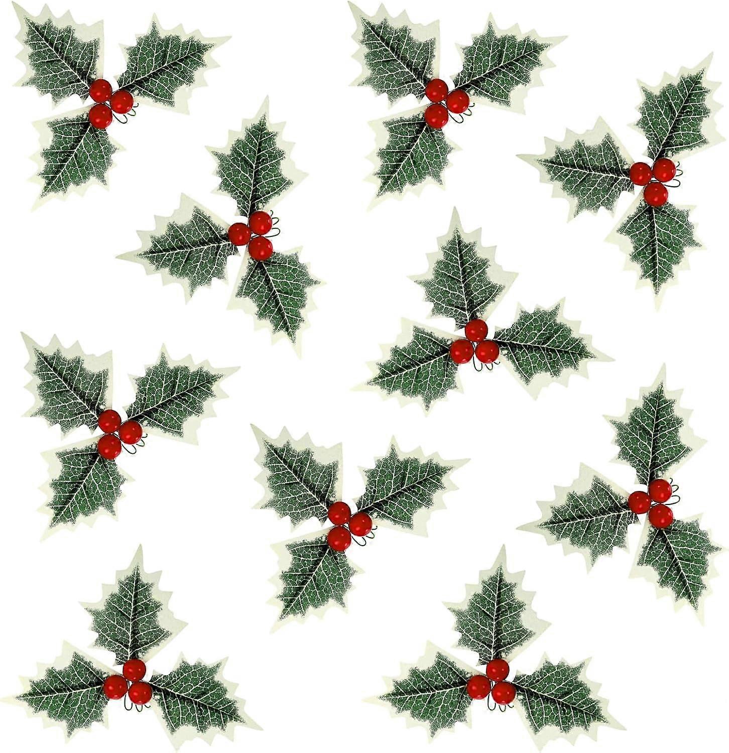 10 PCS Artificial Holly Berries with Green Leaves, Red Holly Berry Flowers for Christmas Tree Wreath Decor (Compatible with A)