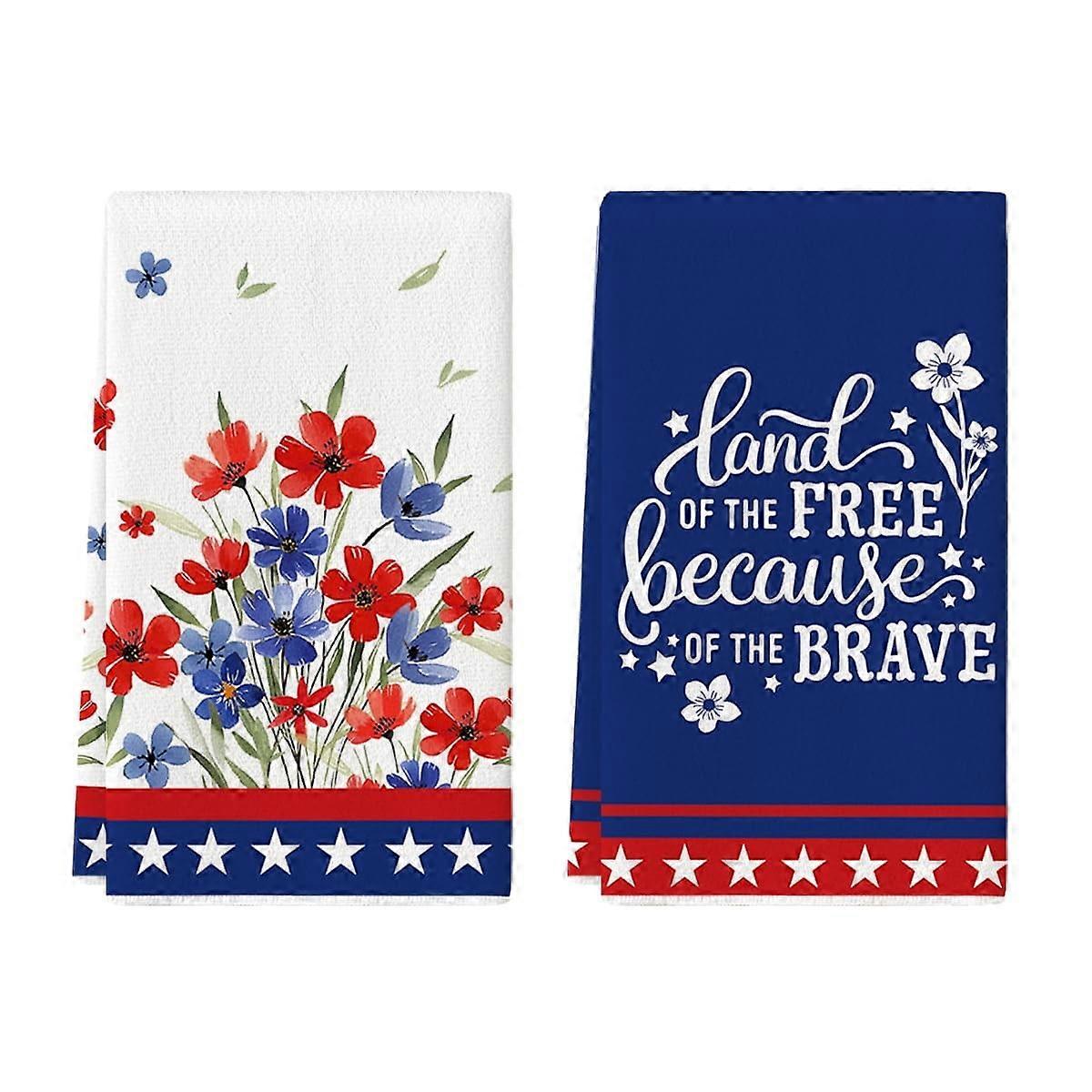 Sm:)e Floral Fourth of July Kitchen Dish Towels 18x26 Inch Set of 2 Patriotic Memorial Day Decoration