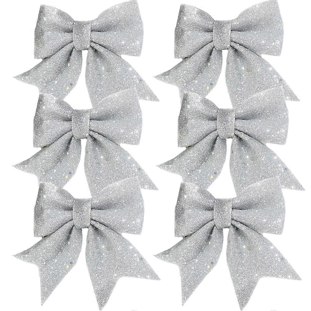 Seewan 6pcs Christmas Bows, Silver Wreath Glitter Sequin Bow Ties for Tree, Home, Party Decor, compatible with Xmas Ornament Decoration