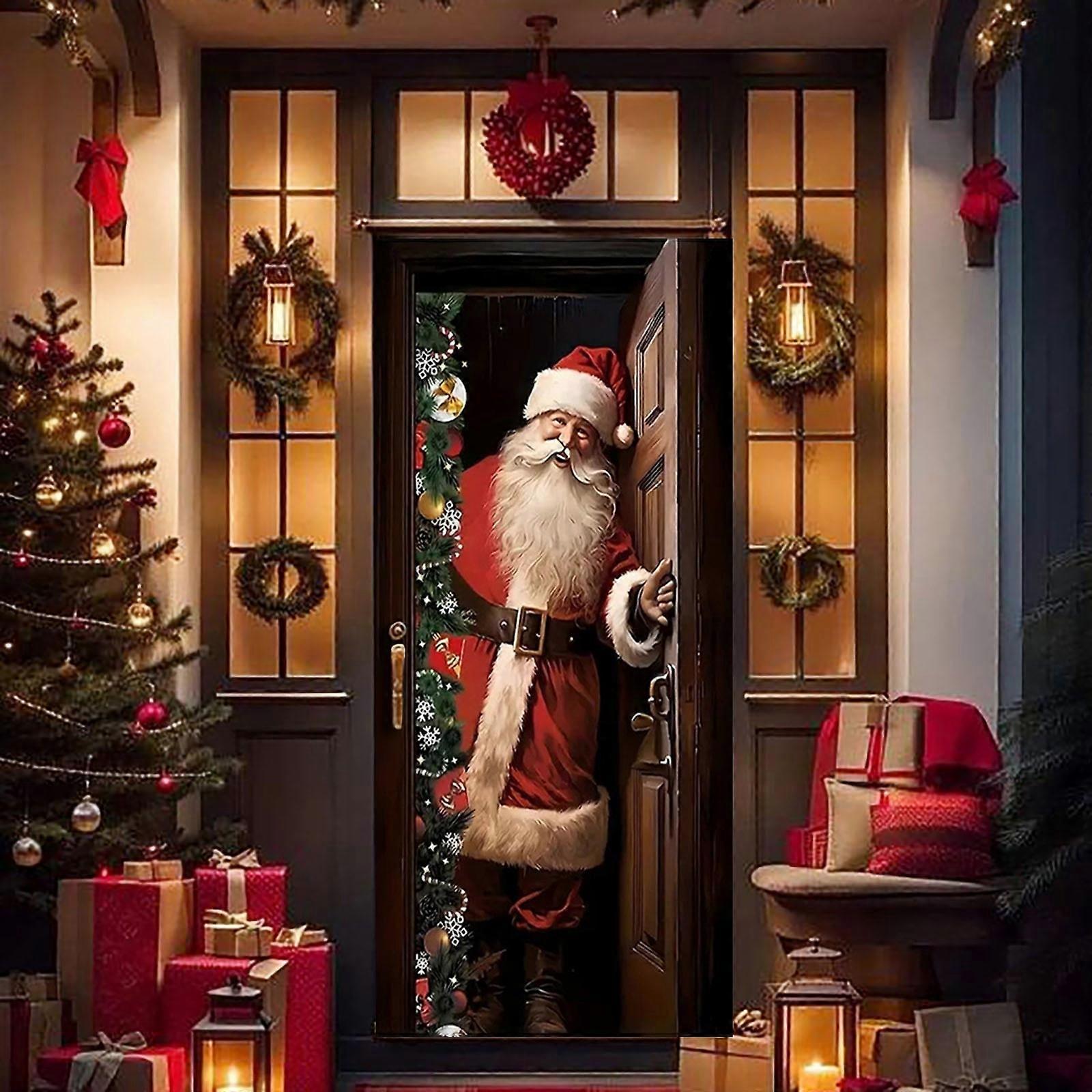 BGZLEU Christmas Door Cover - Santa Claus Xmas Hanging Banner for Home Front Door, Holiday & New Year Decoration (Welcome Santa Claus)