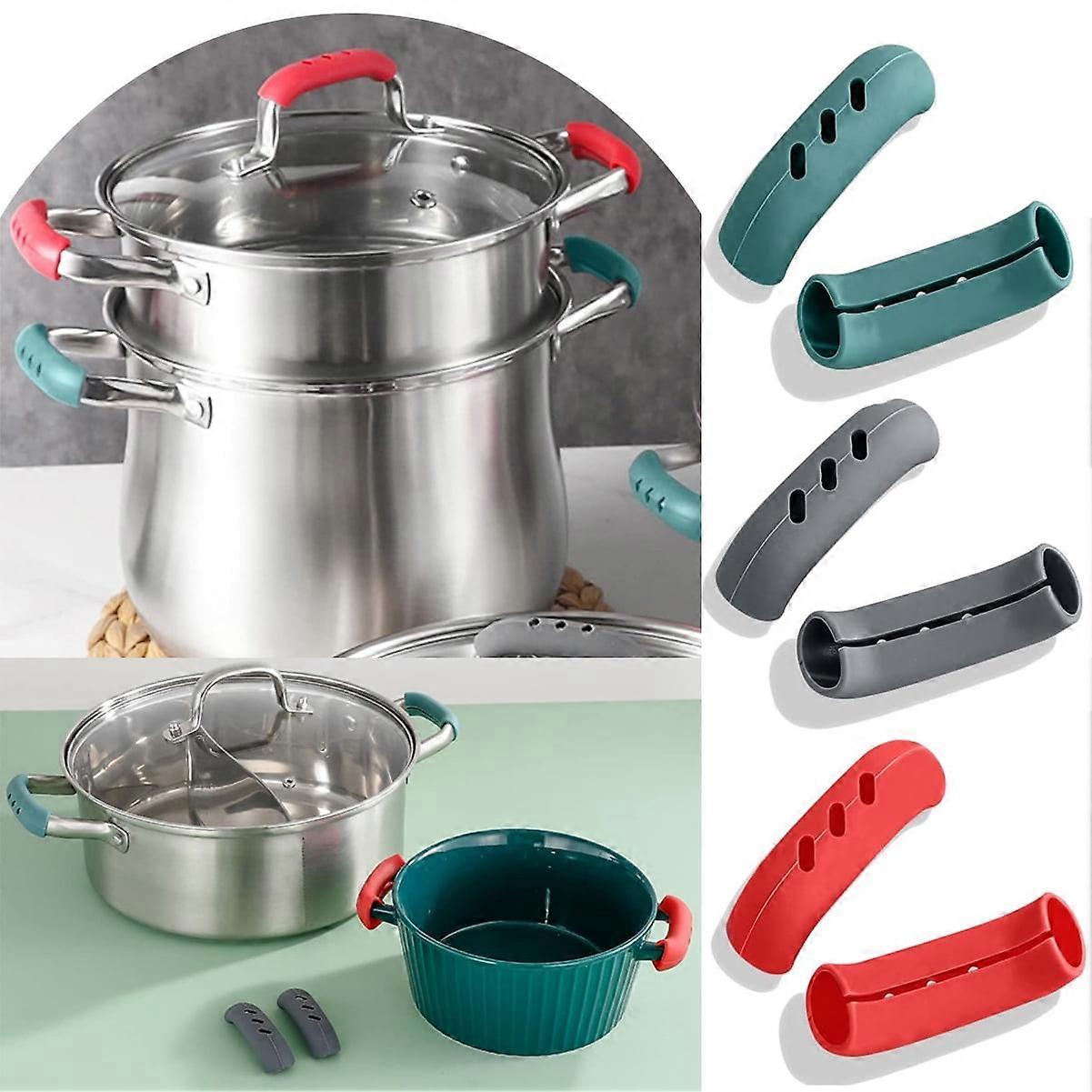 4 Pack Silicone Assist Hot Pan Handle Holder Grips, Heat Resistant Non Slip Pot Grip Handle Sleeve, Hot Handle Holder Wok for Frying Pans Griddles