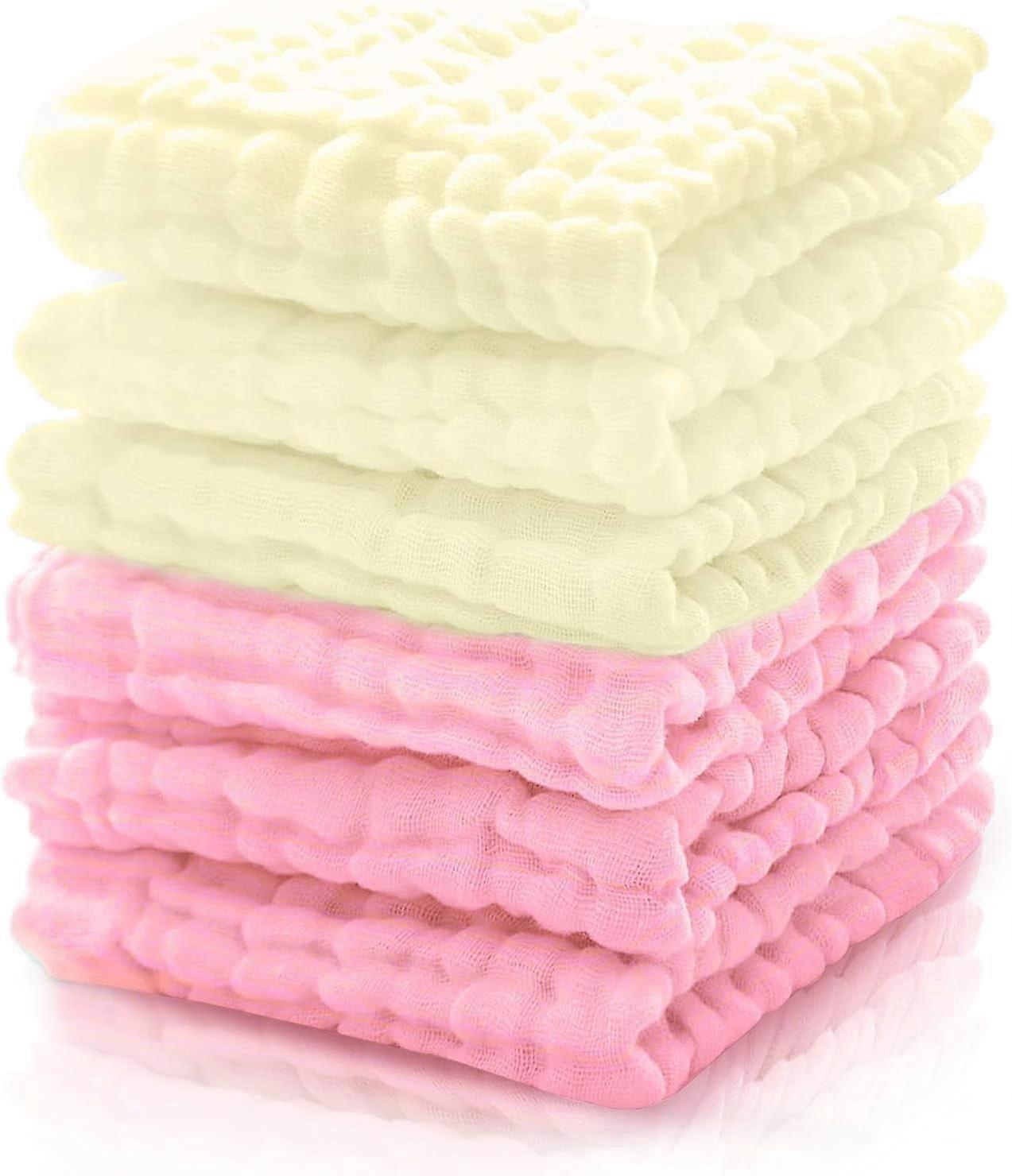 Large Size Baby Burp Cloths 6-Pack, 100% Cotton Muslin Washcloths, Soft & Absorbent 6-Layer 20x10 Inch for Girls & Boys
