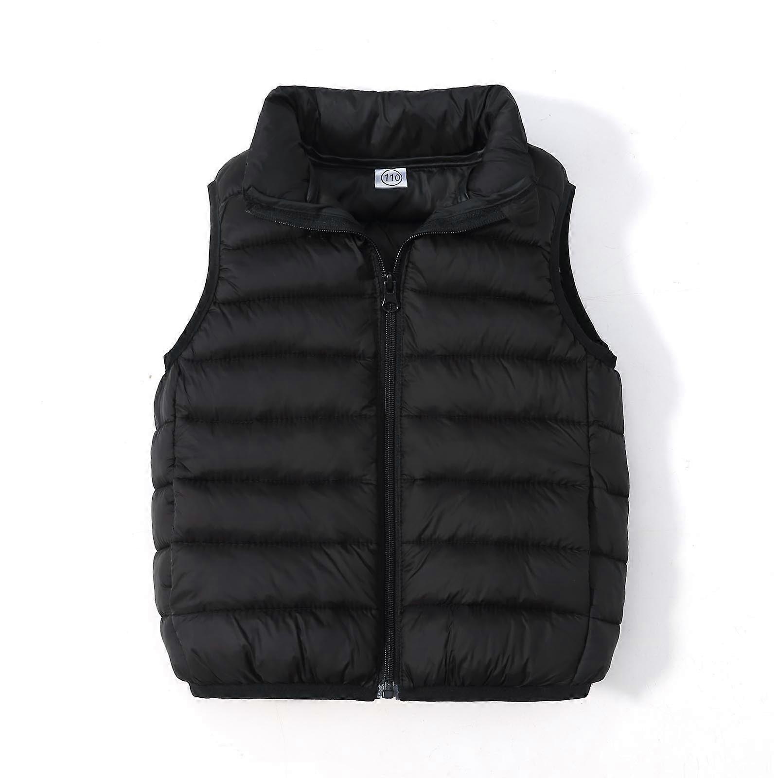 Shldybc Toddler Warm Puffer Vest, Sleeveless Waistcoat with Zipper, Winter Outwear for Boys Girls (Black, 8-9Y)
