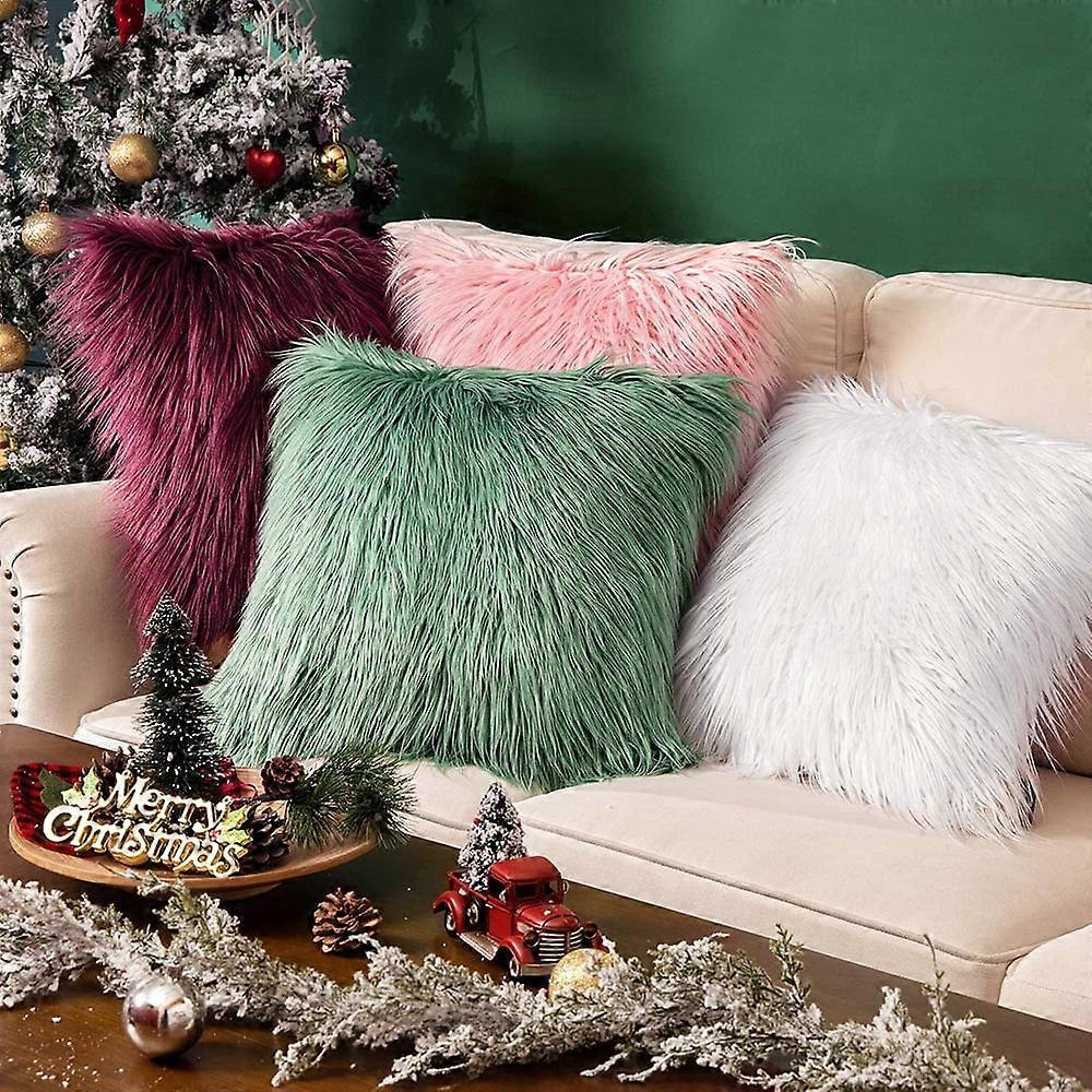 2PCS Faux Fur Throw Pillow Covers Cushion Covers Luxury Soft Decorative Pillowcase Fuzzy Pillow Covers for Bed/Couch,18 x 18 Inches