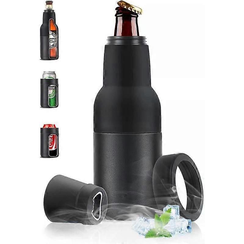 14 oz. Bottle and Can Cooler with Opener,3 in 1 Slim Can Bottle Insulators Holder, Double Walled Stainless Steel Insulated Can Cooler for