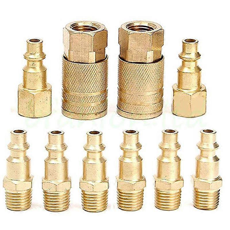 Brass quick-connect air fitting and cap kit - 1/4" NPT fittings - 10 pieces, ladacèe