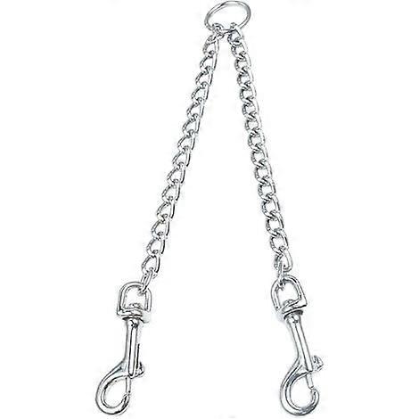 <p>MATERIAL: Chrome-plated alloy chain dog leash separator, high-quality material resistant to tarnishing or rust. Works with all dog collars. <p>NO TUGGING DESIGN: The 360° swivel snap hook design allows for automatic adjustment when dogs cross paths, no restrictions for your dogs as they move from side to side without tampering with the leash. <p>SECURE AND DURABLE: The heavy-duty metal chain leash coupler is wear-resistant, has high tensile strength for durability, is simple and convenient, no more chewing, and has extreme hardness for wear resistance, suitable for daily walks and training. <p>CONVENIENT AND COMFORTABLE: Simply attach a leash to the extra-strong coupler or separator and you can walk and control two dogs at once while maintaining secure control over both! Free one hand and control both dogs with a single leash. Life is easy. <p>WIDELY USED: Ideal for hiking, camping, training, hunting, walking, exploring the yard, easily teaching your dog recall outdoors, and more. <p>Specifications: <p>Material: Chrome-plated alloy <p>Color: Silver <p>Size: L <p>Size L (L x W): Approx. 3.5 mm x 60 cm / 0.14 x 23.62 inches <p>Package Included: <p>1 x Double Dog Leash <p>Note: <p>1. Due to the light and screen difference, the item's color may be slightly different from the pictures. <p>2. Please allow 0.5-2 cm differences due to manual measurement.