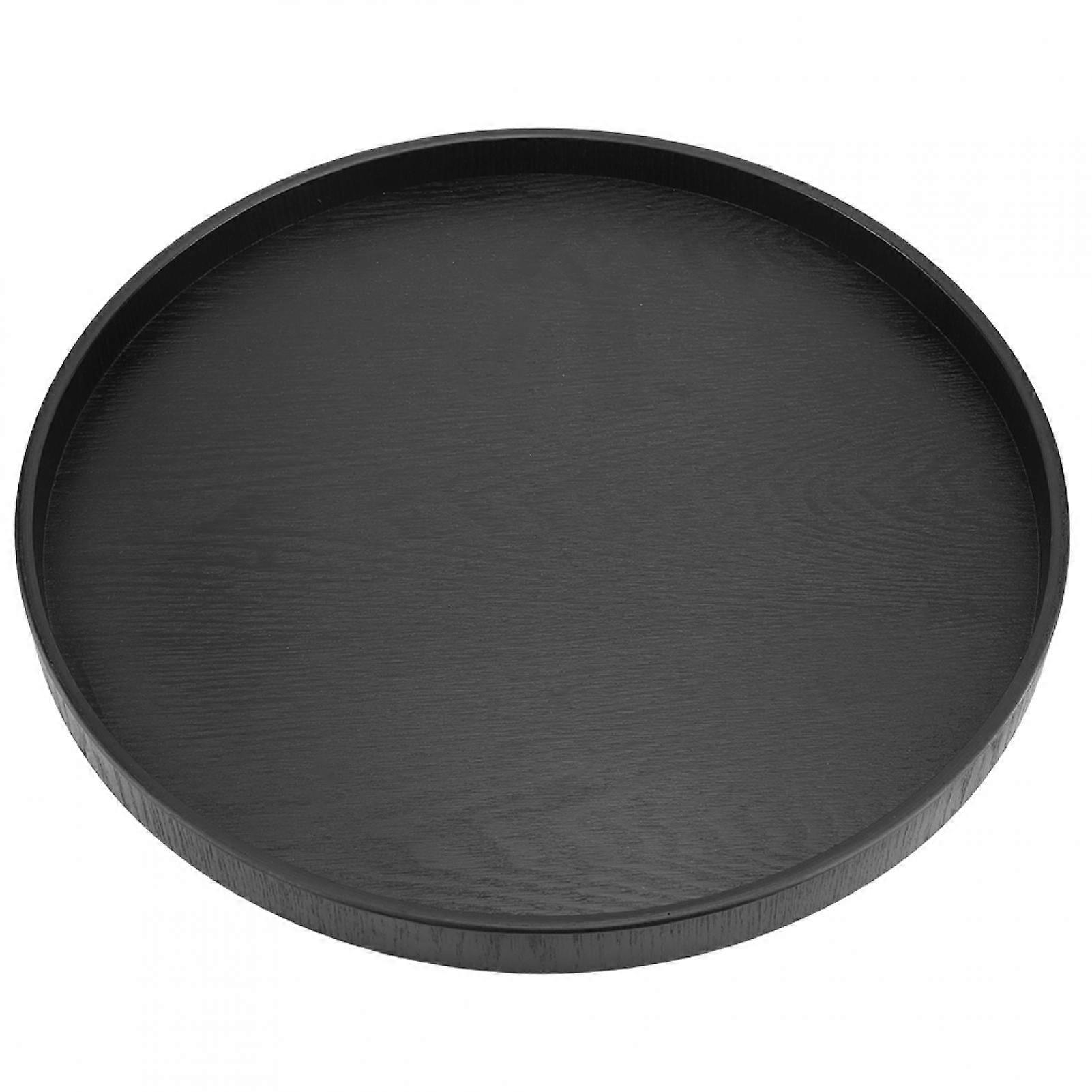Bandeja de té, forma redonda, madera maciza, té, café, aperitivos, comidas, bandeja para servir, plato, bandejas de restaurante, 37,5 cm(negro)