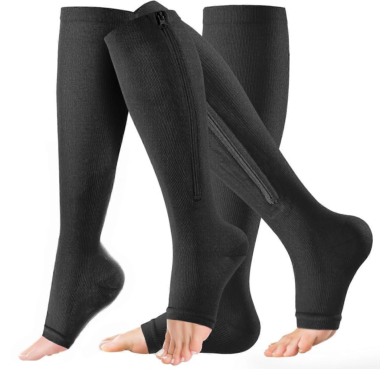 2 Pairs Of Zipper Compression Socks Knee High Men & Women - 15-20mmhg Open Toe Compression Socks, Suit for Walking,Running