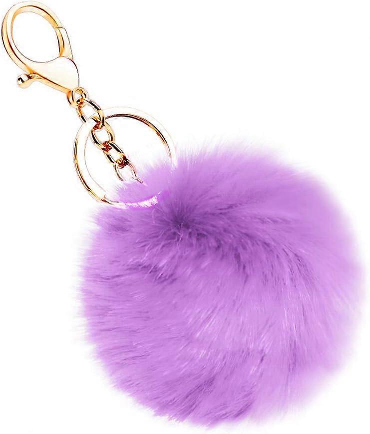 Artificial Rabbit Fur Keychain Fluffy Ball Pom Pom Keyring Bags Suitcases Backpacks Accessories Charm Car Keyring Keyring for Women (Light Purple)