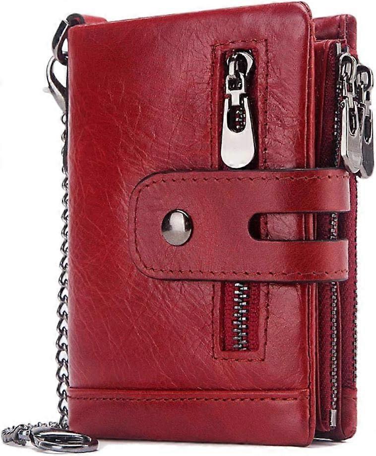 Men's wallets. Men's leather wallet with RFID blocking, bifold zipper, 16 card slots, card case, money clip, red.