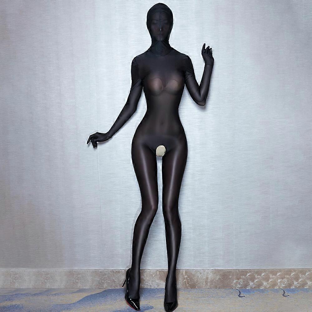Full Bodystocking Bodysuit Crotchless Lingerie Oil Shiny Glossy Jumpsuit Catsuit
