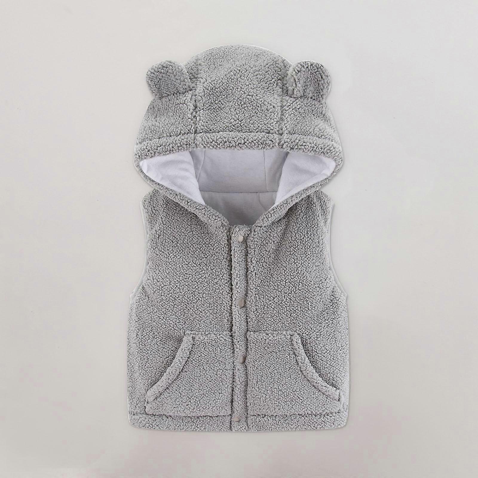 SDJMa Toddler Baby Boys Girls Fleece Sherpa Hooded Vest Fuzzy Sleeveless Jacket Fall Stand Collar Outerwear with Pockets