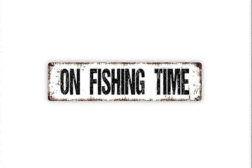 On Fishing Time Sign Fisherman Lake River Bait And Tackle Rustic Street Metal Sign or Door Name Plate Plaque Size: 4 x 16 Inch