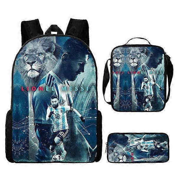 3-pack football star Lionel Messi backpack student school bag P2-WELLNGS P2 P2 3Pcs Set