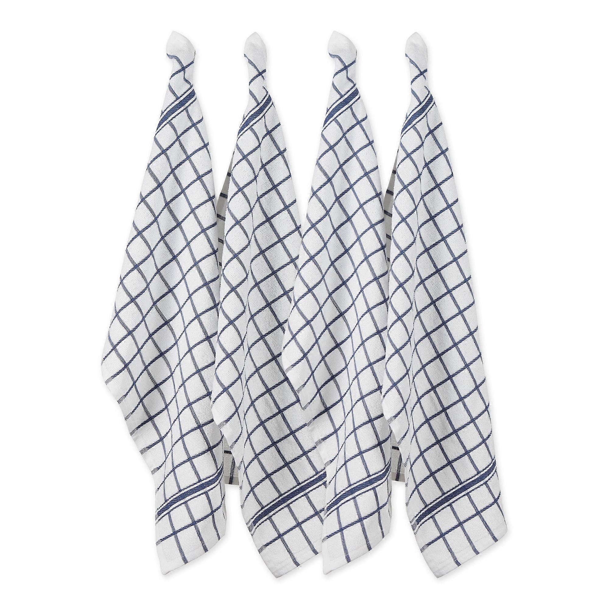 Contemporary Home Living Set of 4 French Blue and White Windowpane Terry Dish Towel, 26"