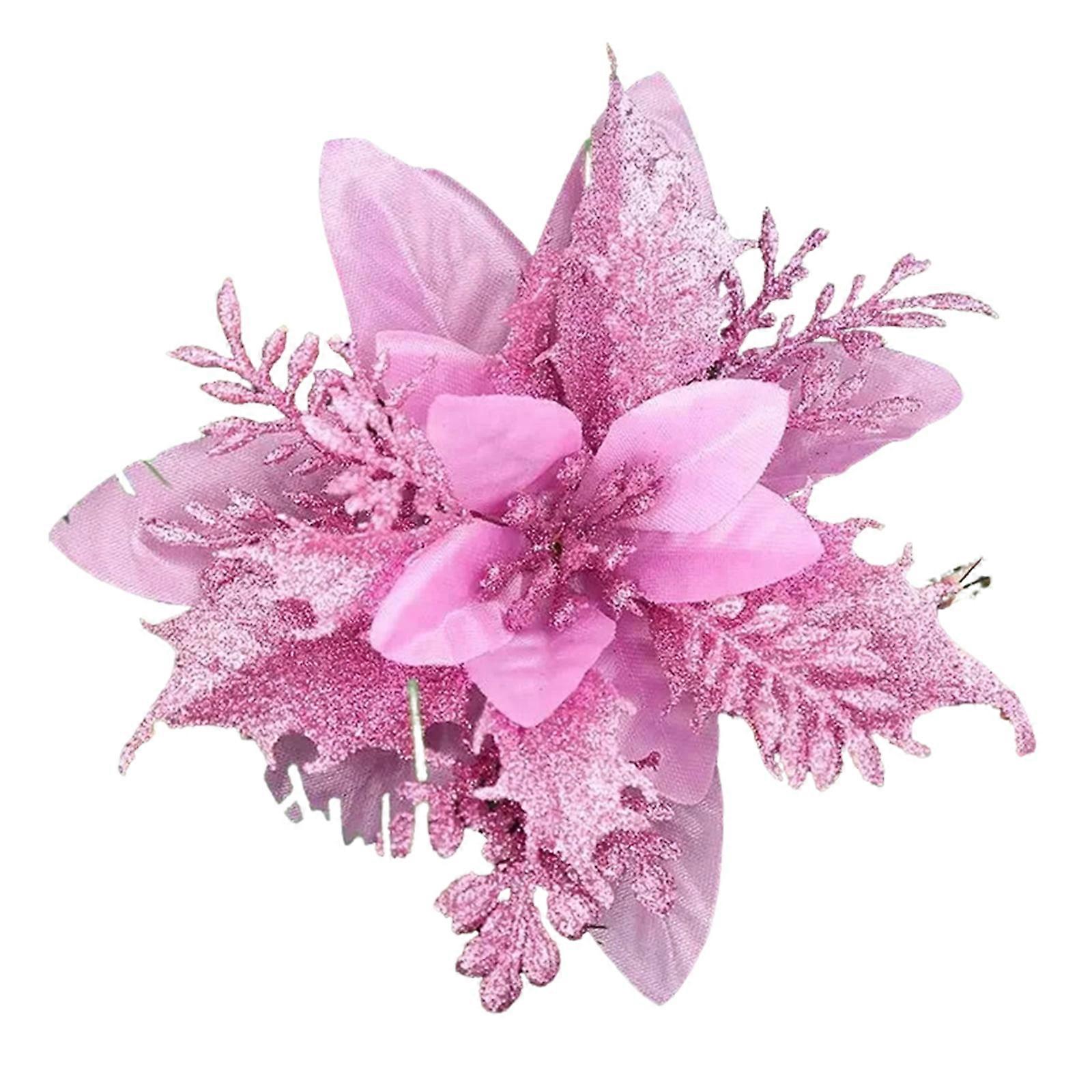 2025 & CISIL - Glitter Poinsettia 5.5 Inch Artificial Flower Christmas Clip Stem Christmas Tree Ornaments For Wedding Party Wreath Decoration