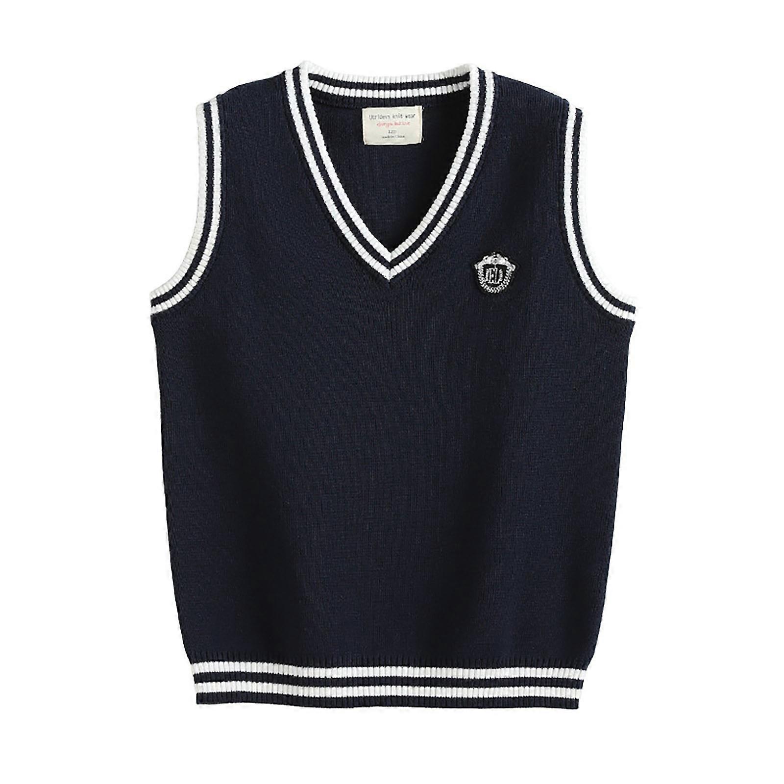 Fleece Jacket Children'S V Neck Contrasting Yarn Vest Boys' Knitted Vest Sweater Women'S High School Children'S Pom Sweater