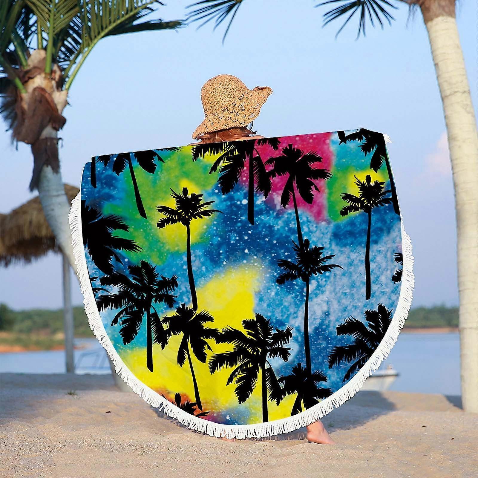 Djunllk Coconut Leaf Round Beach Towel, Oversized Microfiber Blanket Waterproof Sandproof Multifunctional Shawl for Women, Compatible with Summer
