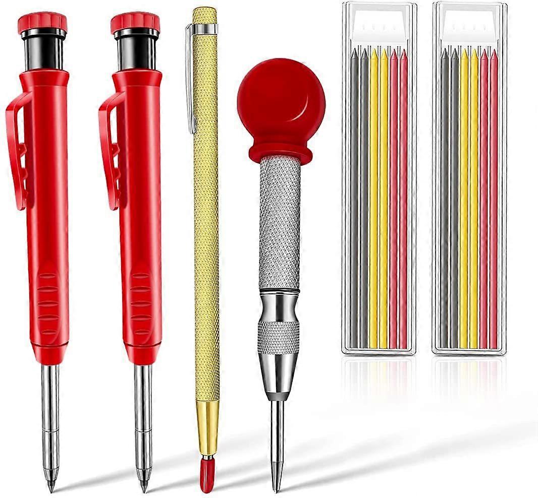 in 1 Carpenter Pencil Set with Marker Refills and Tungsten Carbide Centering Tool, Woodworking Tools for Wood Architect