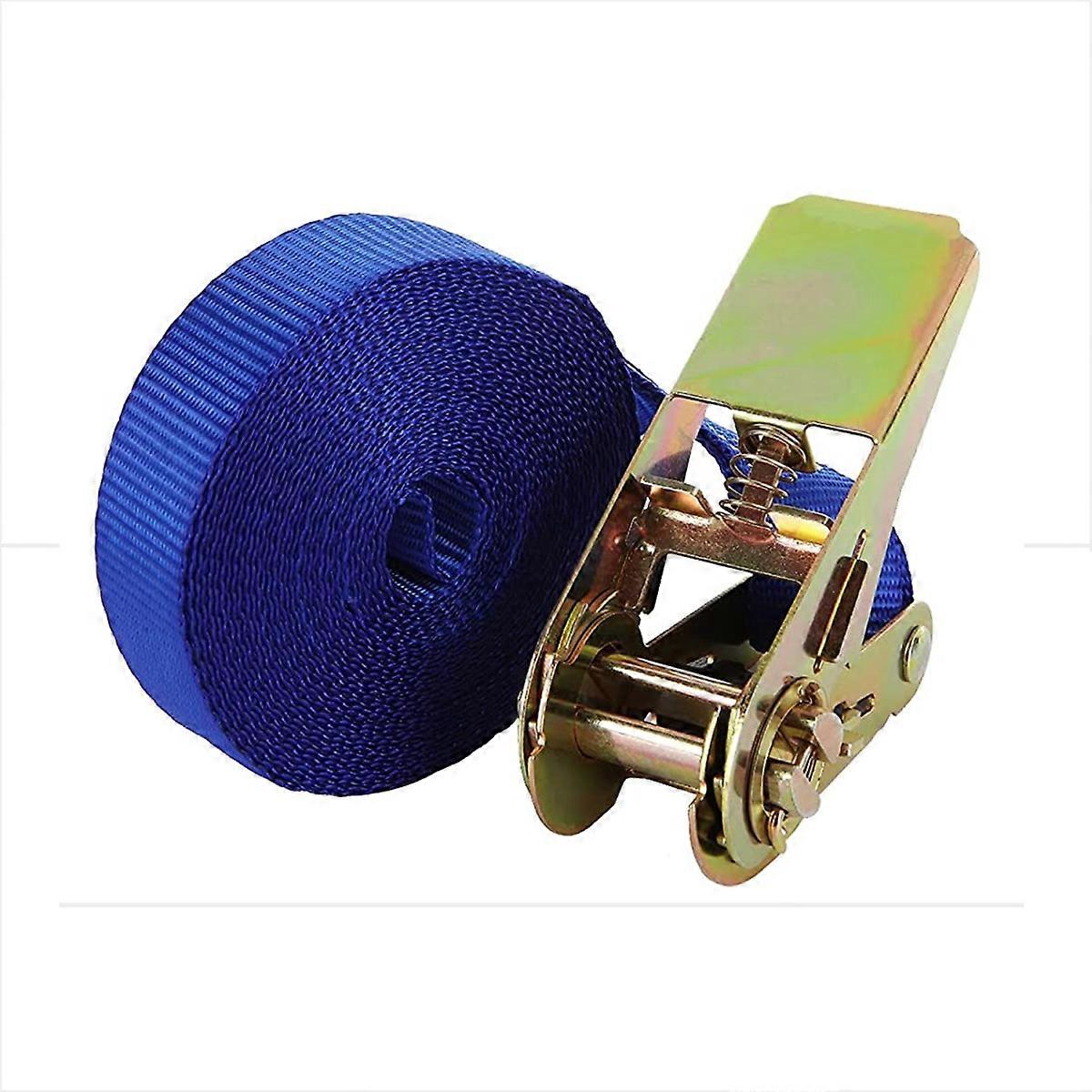 <p>High Quality: The ratchet strap is made of high-strength polyester, which has extremely high flexibility. The ratchet is made of zinc alloy, which provides strong fastening, wear resistance, and corrosion resistance. <p>Wide Range of Applications: The ratchet tie-down strap is suitable for securing goods, securing luggage, and transporting motorcycles. It is also widely used in camping, sports, DIY projects, and moving furniture. <p>Easy to Use: It takes less than 30 seconds to use the ratchet strap to firmly secure the goods you need to transport and effectively and safely control the load during transport. <p>Whether you are securing goods to trucks, semi-trailers, trailers, flatbeds, railcars, or other vehicles, you need reliable tie-down straps. These ratchet straps are high quality, with 4 pieces per pack, which can meet your needs. Quantity delivered: 1 piece Product color: blue Product size: 25mm*5m (lucky to meet)
