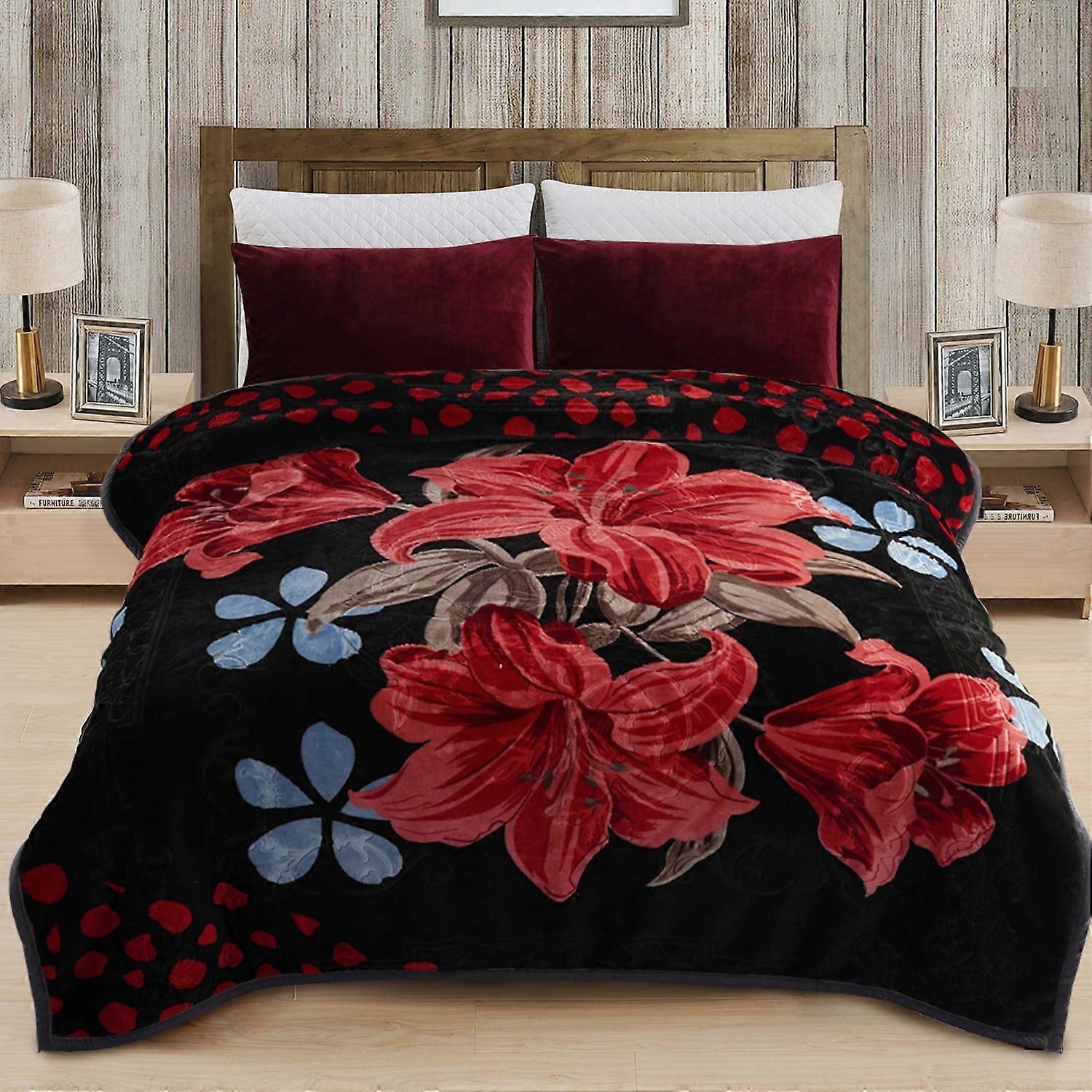 JML Soft Plush Fleece Blanket for Bed Queen 75"x87" 5lb,2 Ply Raschel Blanket Black Red Flower
