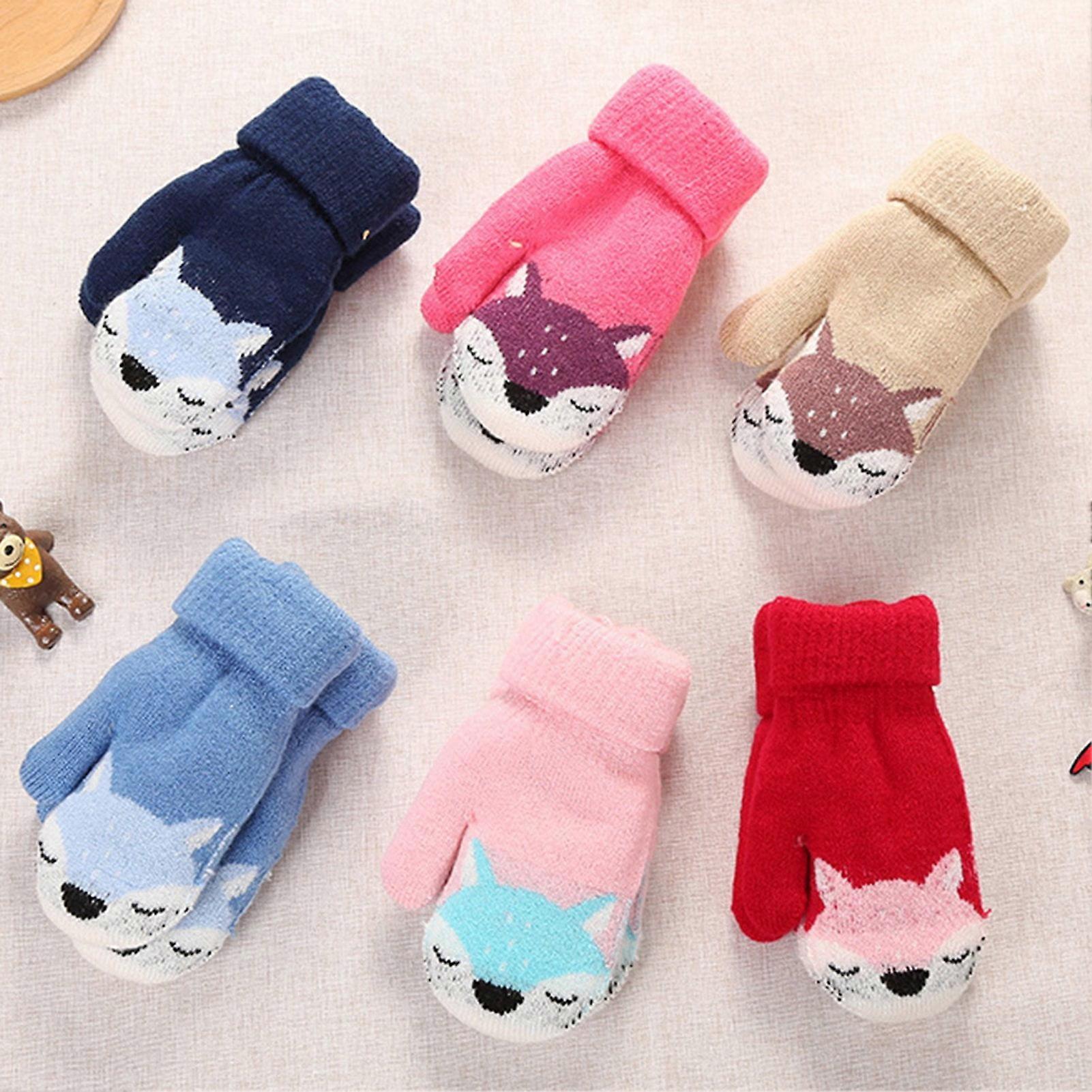 Toddler Mittens Cartoon Fox Gloves Winter Warm Kids Knit Gloves for Boys and Girls