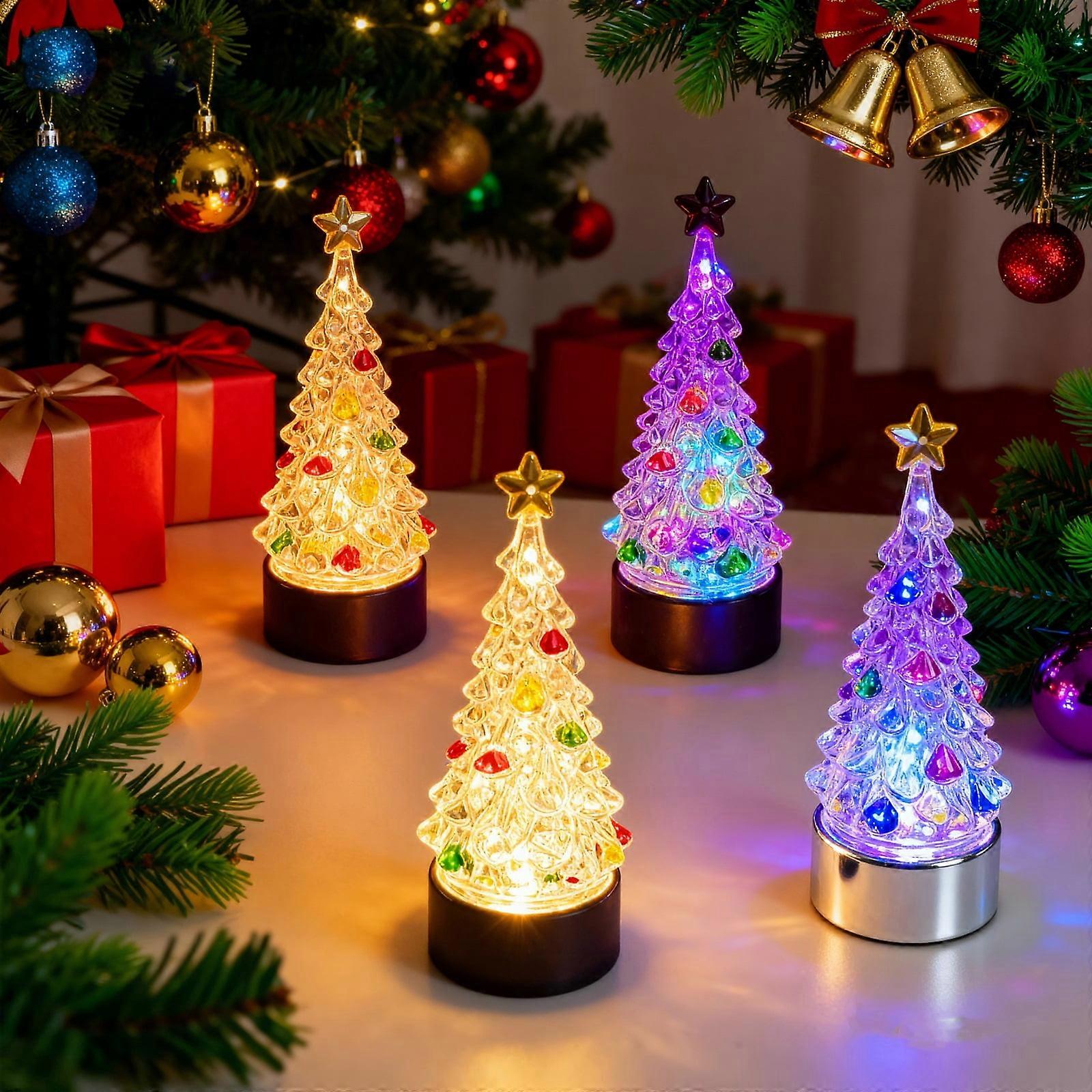 Christmas Trees Clearance: Pre-lit Green Cypress Artificial 4.3IN (Silver Colored Light), Luminous Ornament, Night Light, Xmas Decor