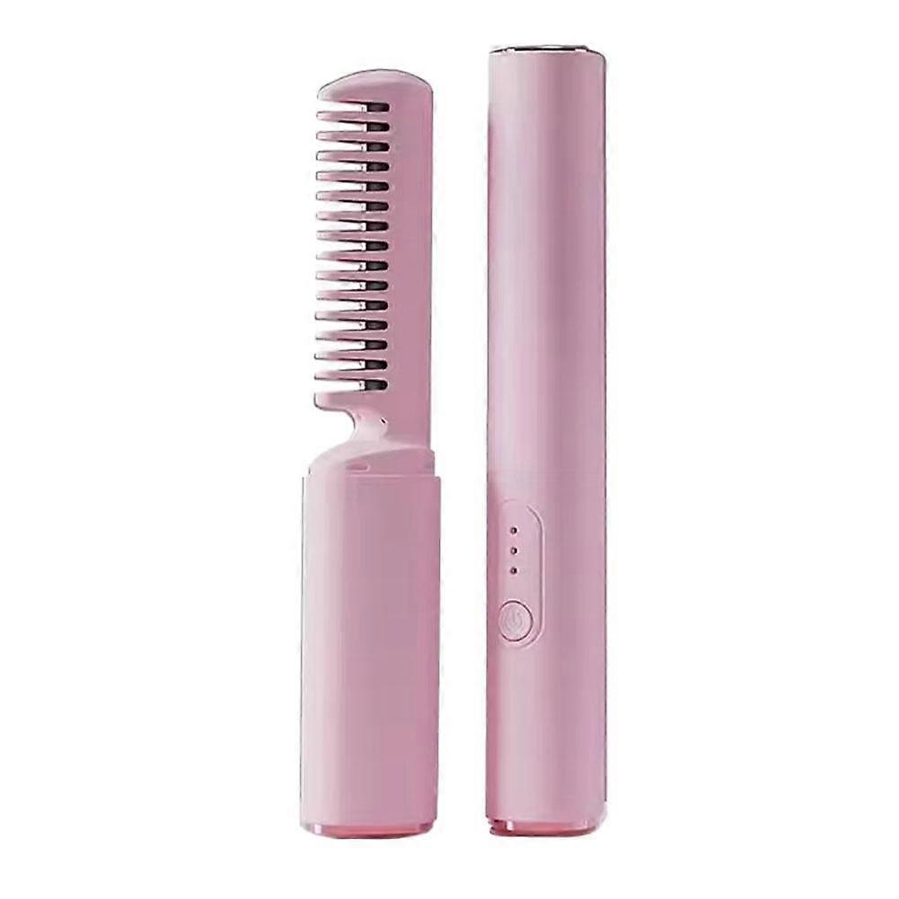 Pink Lazy Straight Hair Comb Wireless Hair Straightener Small Usb Charging Portable Travel Curling Straight Dual-Purpose Artifact