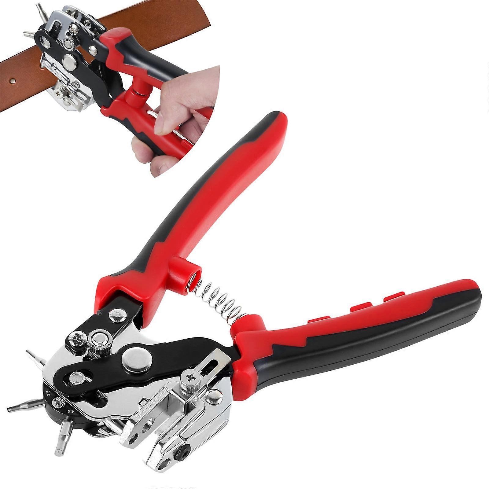 Txkrhwa Revolving Punch Pliers, Rotary Leather Belt Hole Punch Tool with 6 Size Holes for Belts, Watch Bands, Handbag Straps, Dog Collars, Shoes,