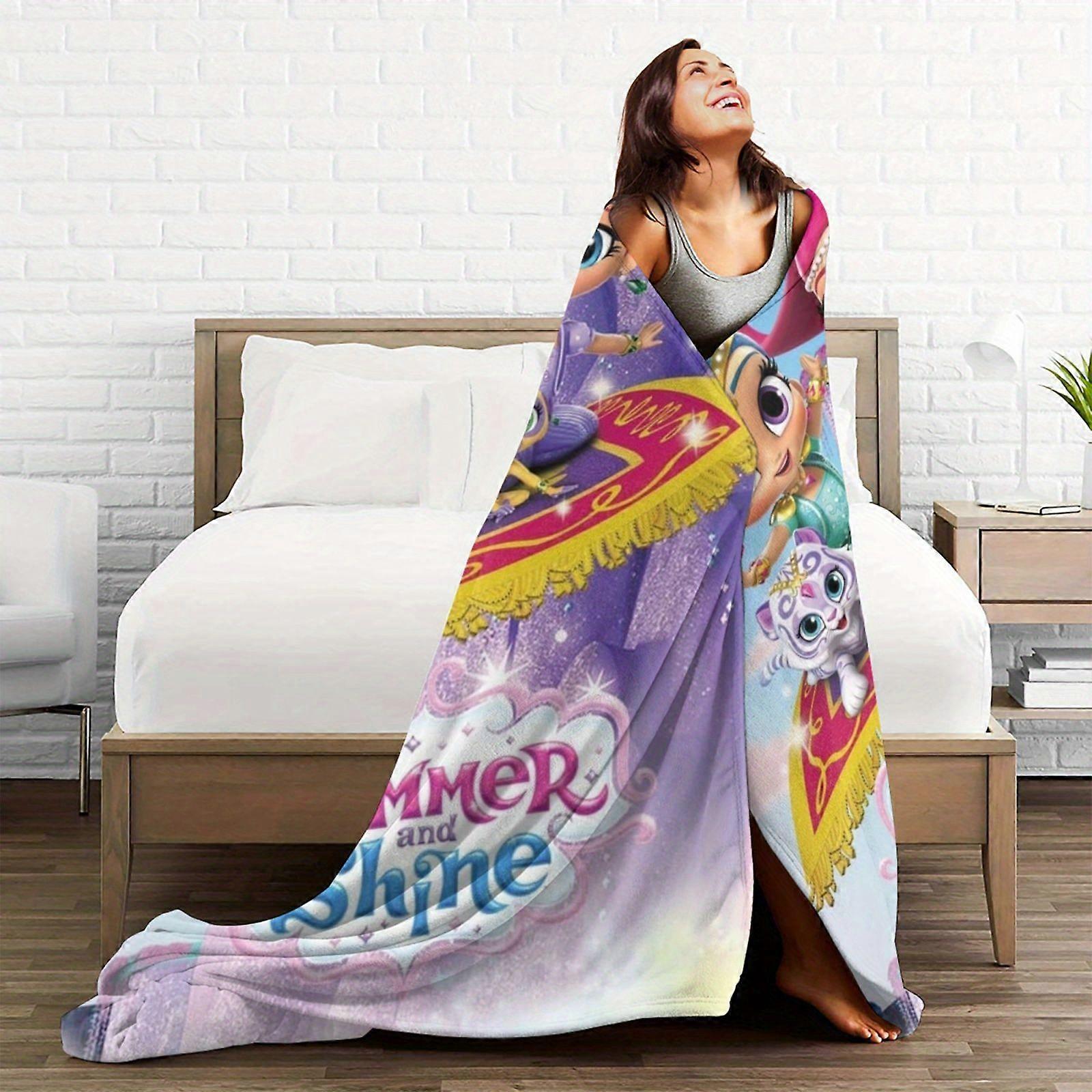 Shimmer and Shine High-Definition Digital Print Flannel Blanket - Soft, Comfortable Cartoon Design with Vibrant Colors, -AZOKJ56